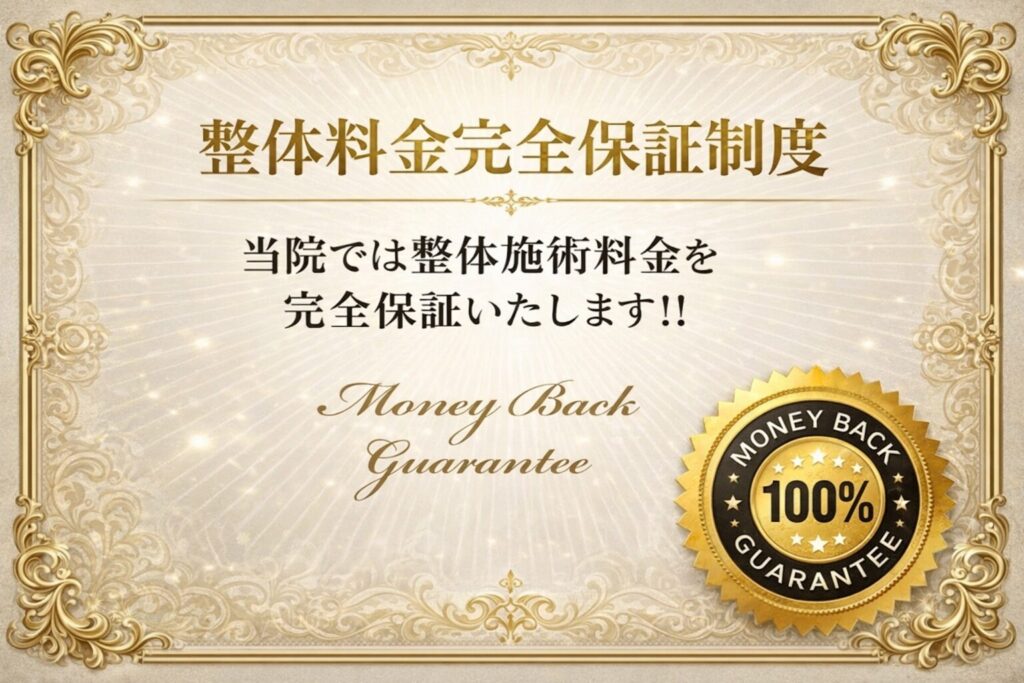 当院は安心して施術を受けていただくために、新規の方に対して「施術料金・安心返金保証制度」導入しております。