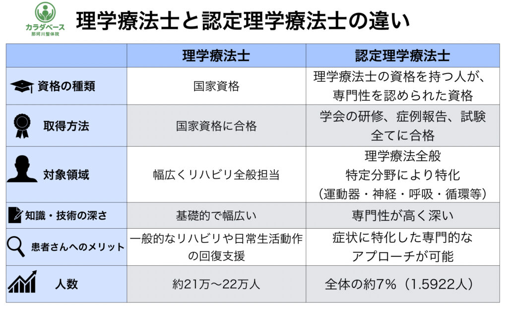 今回は、一般の方にも分かりやすく“理学療法士と認定理学療法士の違い”を解説します。