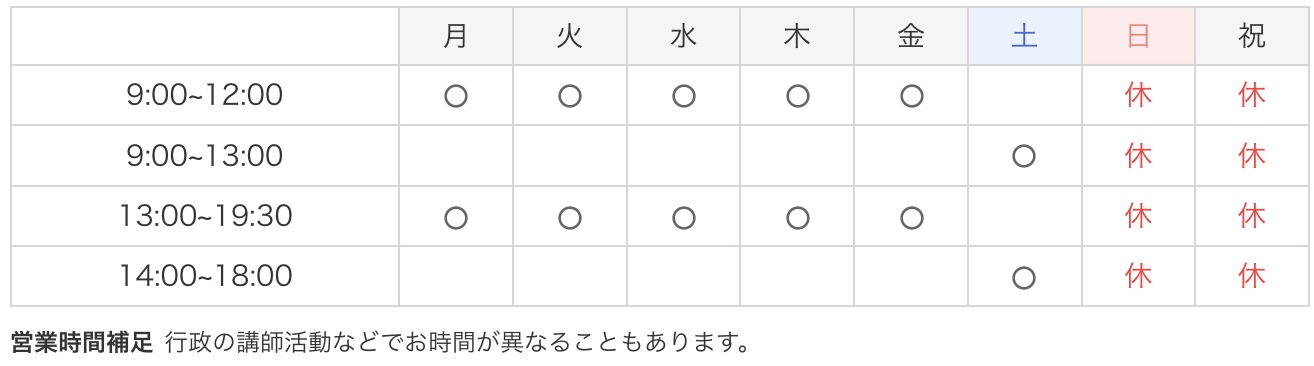 ・ 営業日:月〜土(定休日:日/祝日)