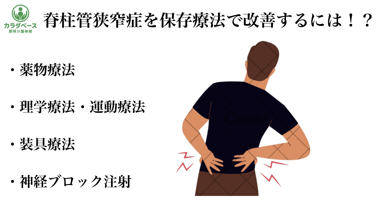 脊柱管狭窄症のほとんどの方は、まず保存療法から始めます。代表的な方法は次の通りです。