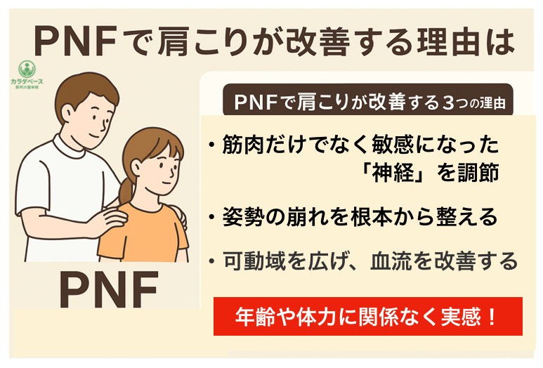 PNF(固有受容性神経筋促通法)による肩こり改善理由を、わかりやすくご紹介します😊