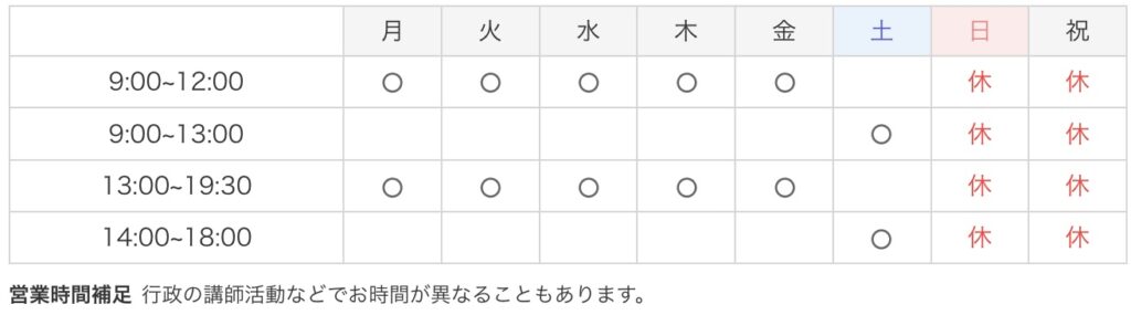 • 営業時間:月〜金9:00~19:30(最終受付 19:00)