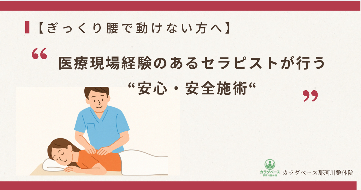 🍀カラダベース那珂川整体院のぎっくり腰施術の特徴